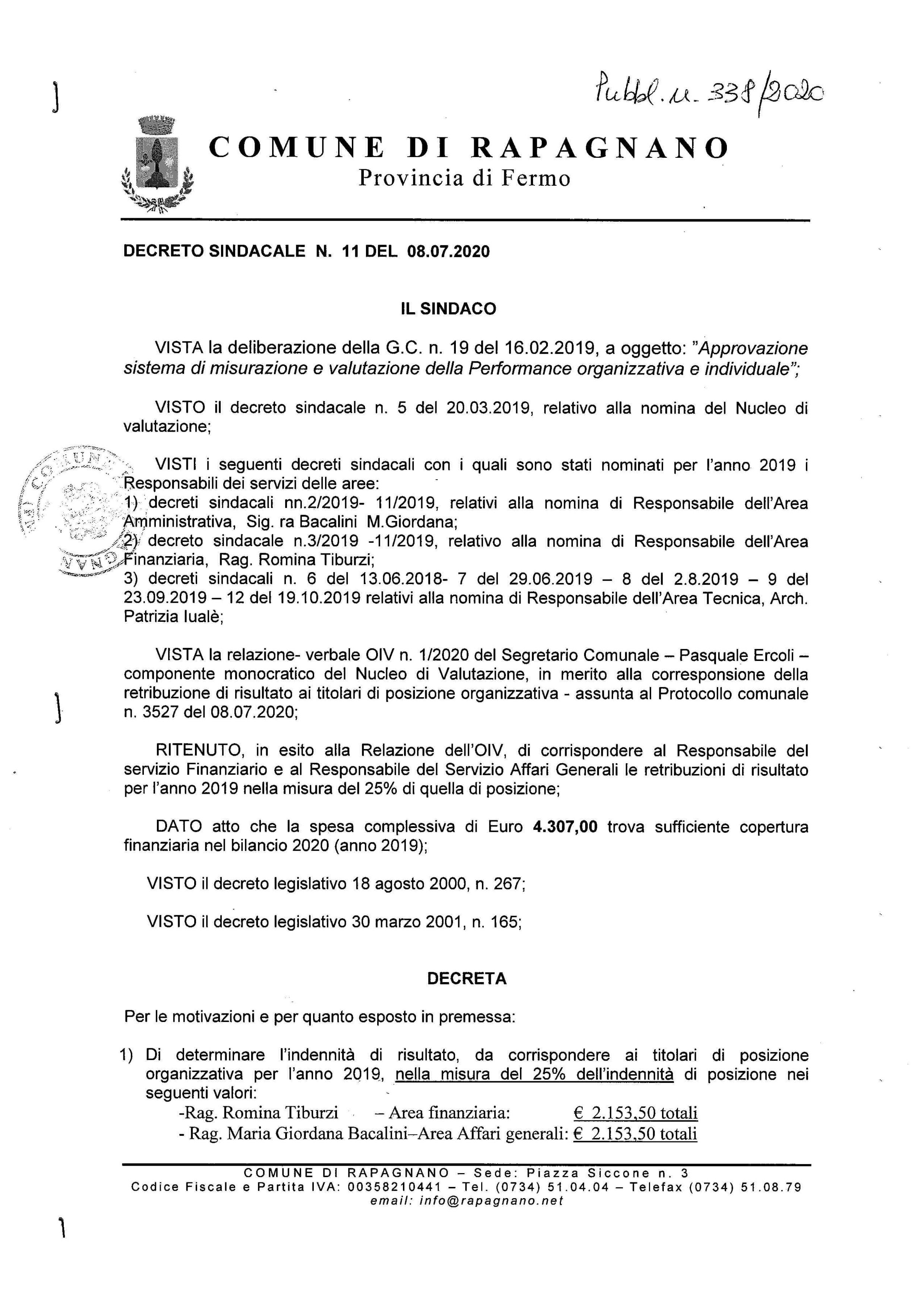 DECRETO SINDACALE N.11 DEL 08.07.2020
